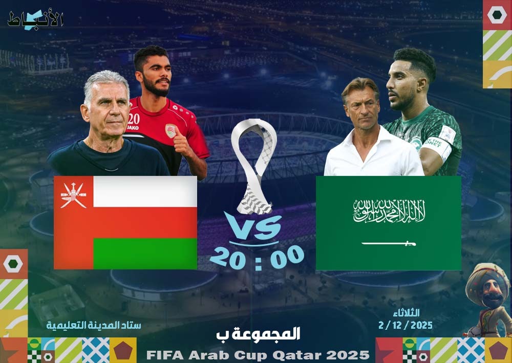 تستكمل في الدوحة على ملعب المدينة التعليمية مواجهة السعودية وعُمان في إطار الجولة الأولى من دور المجموعات لـكأس العرب 2025 ، هذه المباراة تحمل أبعادا تتجاوز مجرد ثلاث نقاط لأنها بداية رسم اتجاه كل منتخب في المجموعة الثانية، لكلا الفريقين انتصار مبكر يعني دخول البطولة بثقة وطموح بينما أي نتيجة غير مرضية ستزيد الضغط على مشوارهما نحو الدور المقبل .
