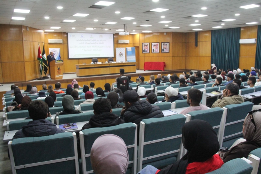 وجاء تنظيم اللقاء استكمالا لسلسلة اللقاءات ضمن مشروع "حواريات تعزيز مشاركة طلبة الجامعات الأردنية في الحياة السياسية"، الذي تنفذه وزارة الشؤون السياسية والبرلمانية بالشراكة مع مركز العالم العربي للتنمية الديمقراطية وحقوق الإنسان، بالتعاون مع مؤسسة هانس زايدل، بحضور رئيس الجامعة الأستاذ الدكتور مالك الشرايري، وعدد من أعضاء الهيئتين التدريسية والإدارية.