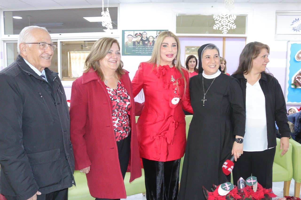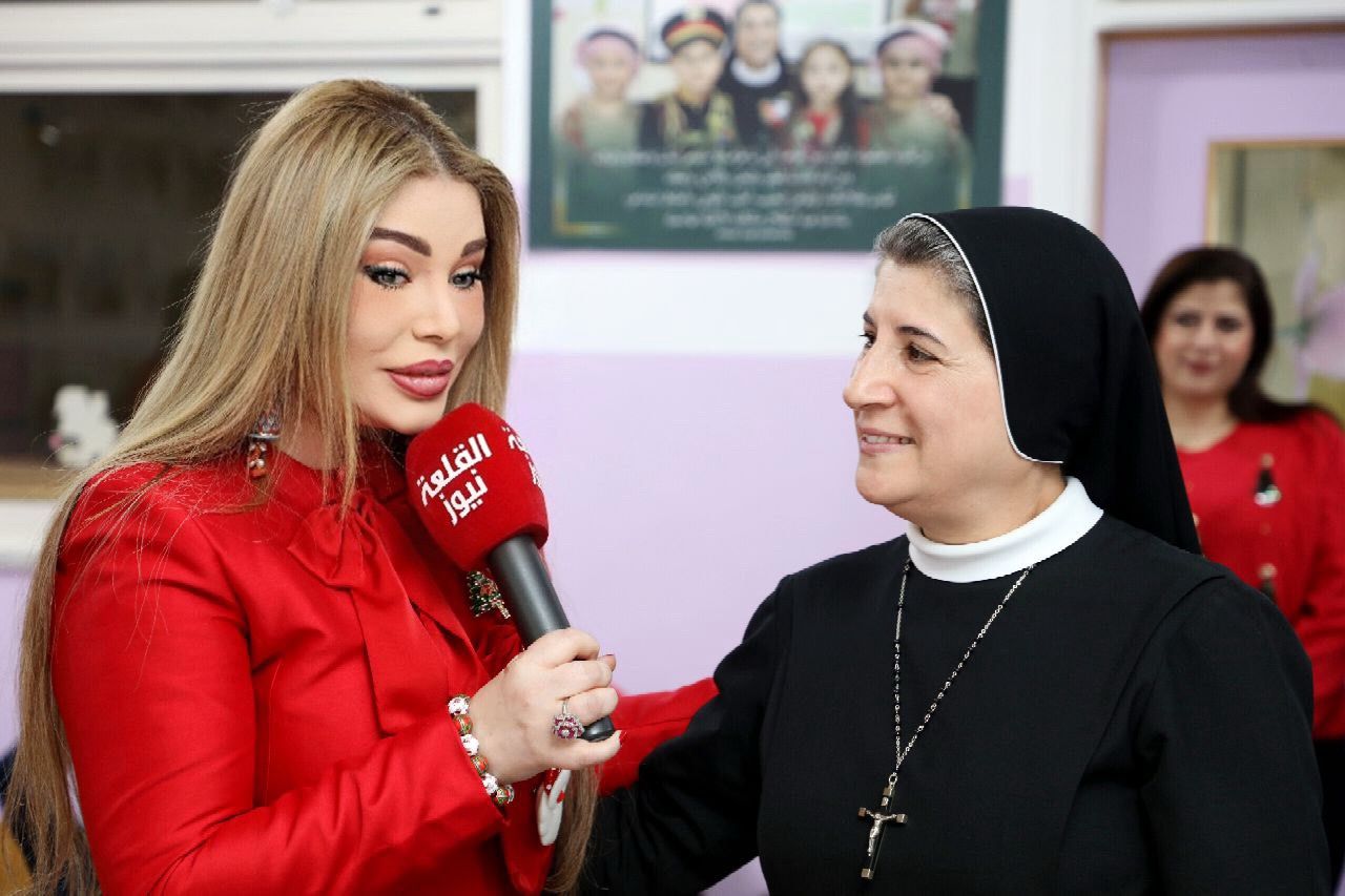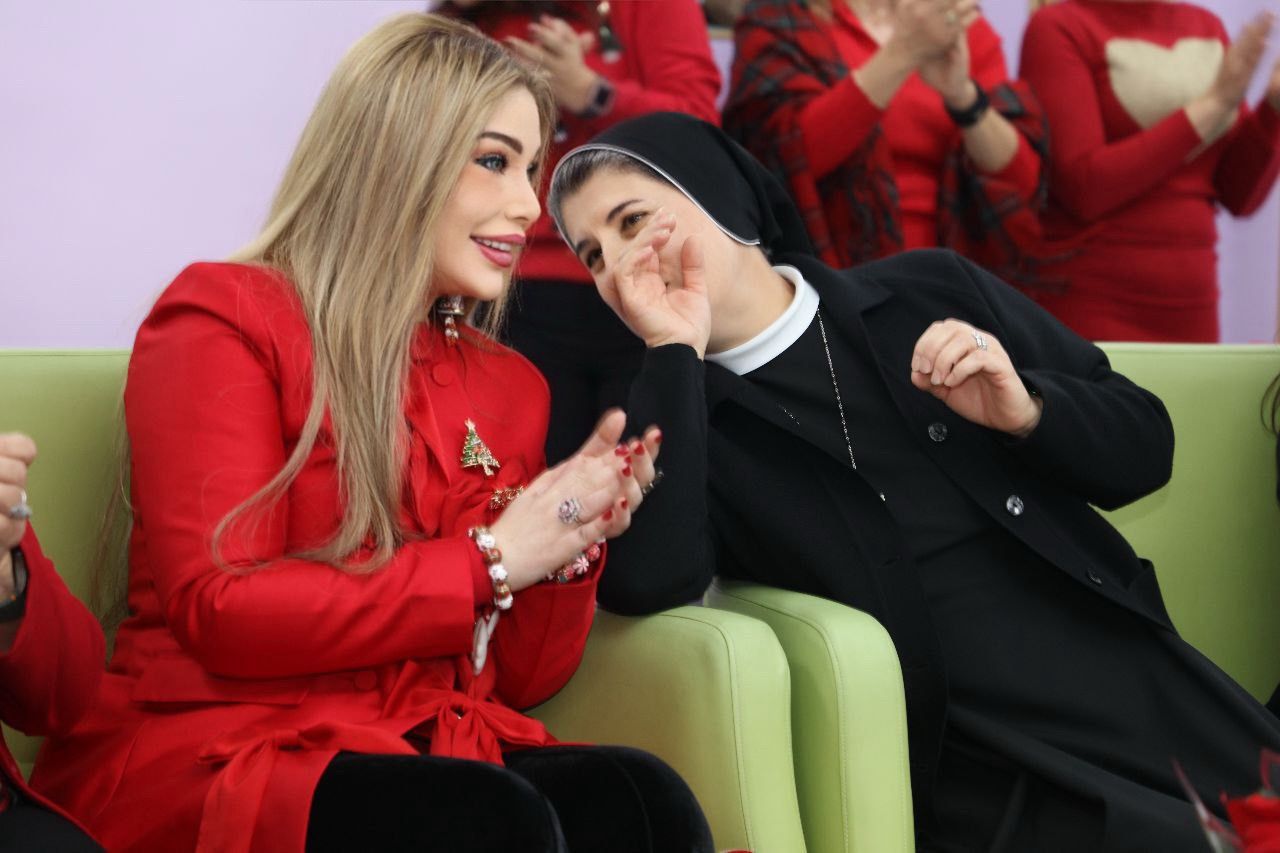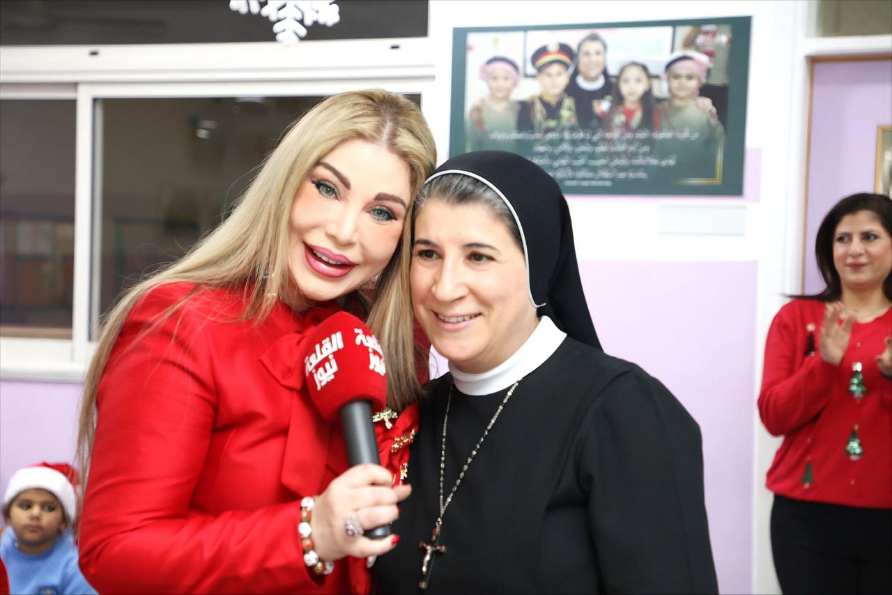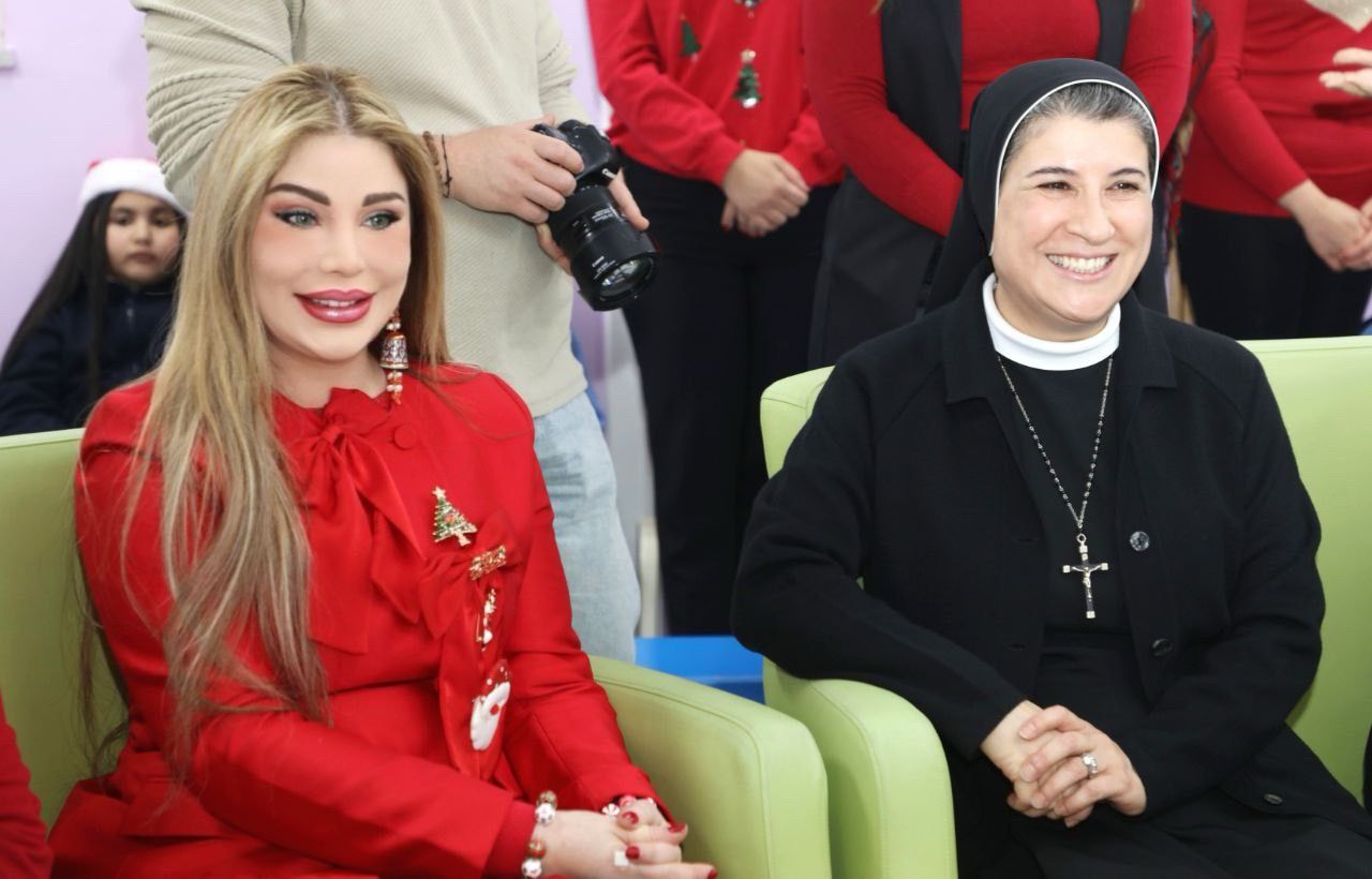 الاديبة الدكتورة سارة السهيل تشارك الاخت الراهبة كارولين بدر في إضاءة شجرة عيد الميلاد في مدرسة راهبات الوردية بالشميساني