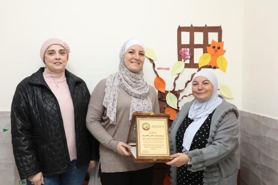 وفي ختام الفعالية قدّمت الأستاذة ميرنا حتقوة درعا تكريما من المنتدى إلى مديرة الروضة شكرا وتقديرا لهذا الاستقبال.