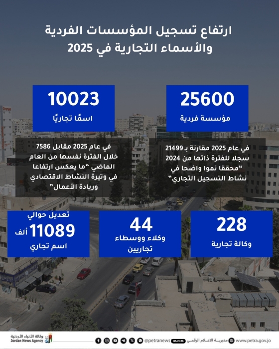قالت المديرة التنفيذية للمؤسسة الأردنية لتطوير المشاريع الاقتصادية "جيدكو" بالوكالة، دانا الزعبي، إن المؤسسة واصلت خلال عام 2025 دورها المحوري في دعم المشاريع الصغيرة والمتوسطة، من خلال تقديم دعم مالي وفني مباشر لـحوالي 206 مشروع، ضمن حزمة برامج تنموية تهدف إلى تعزيز النمو ورفع تنافسية المشاريع الصفيرة والمتوسطة.