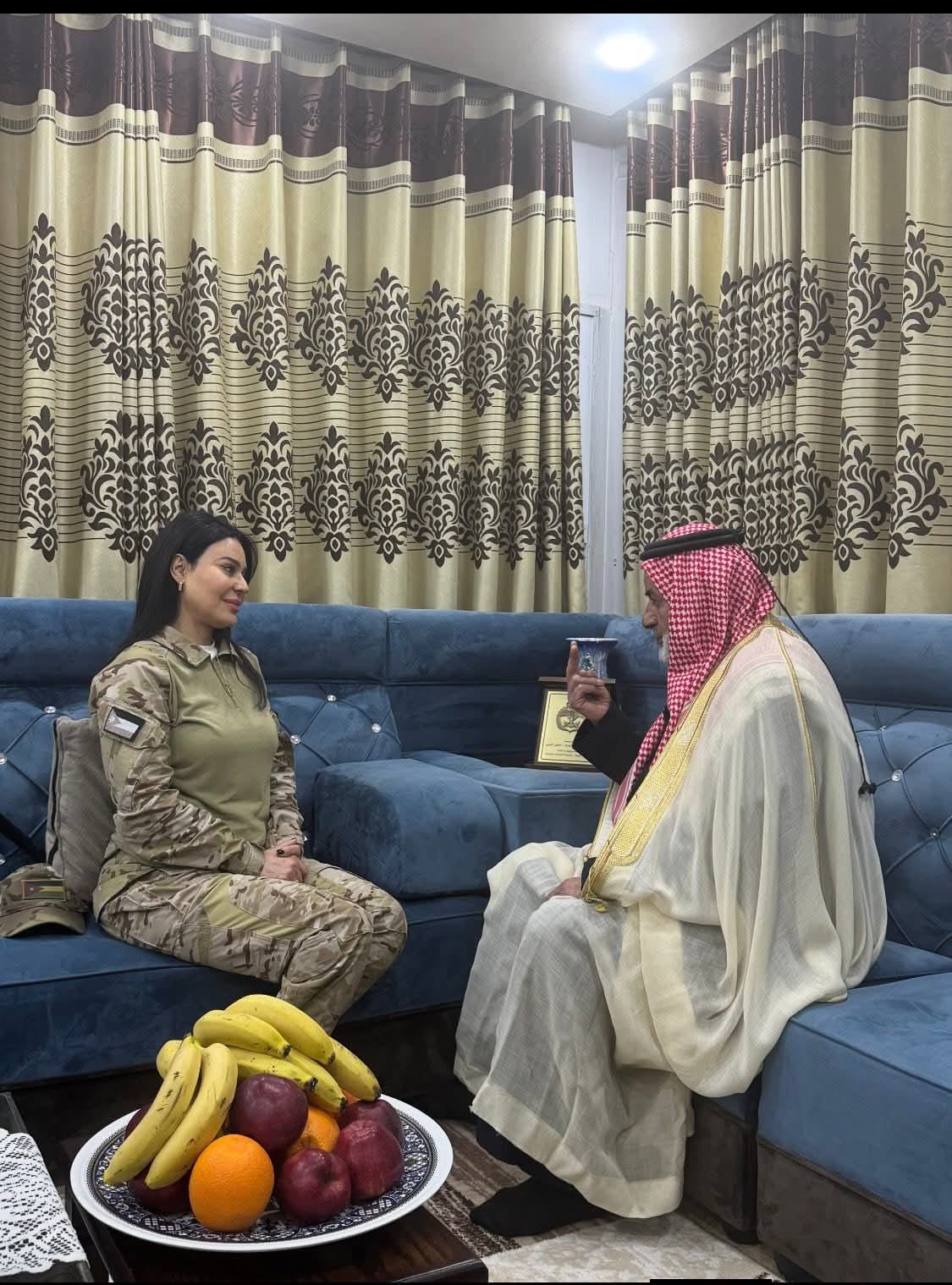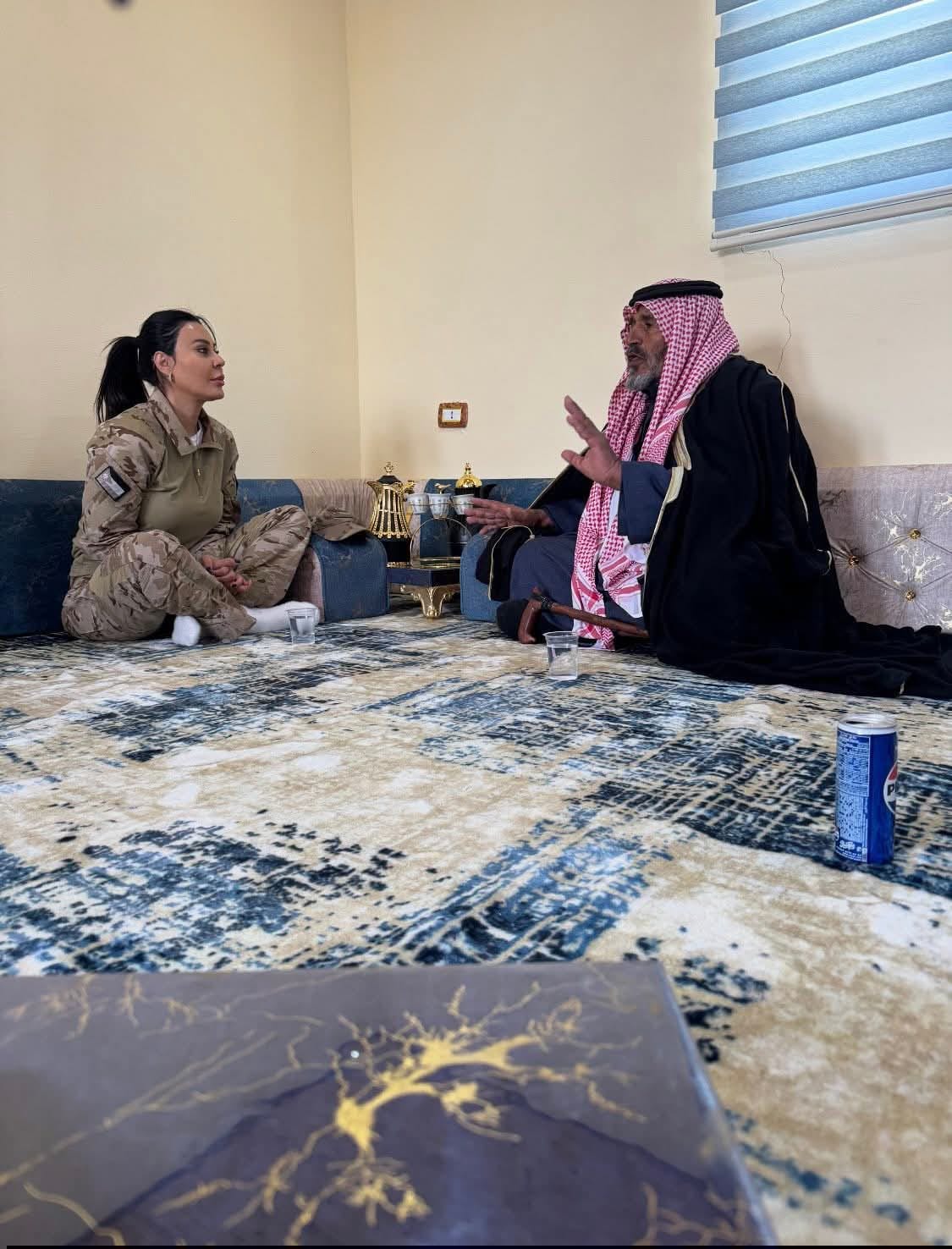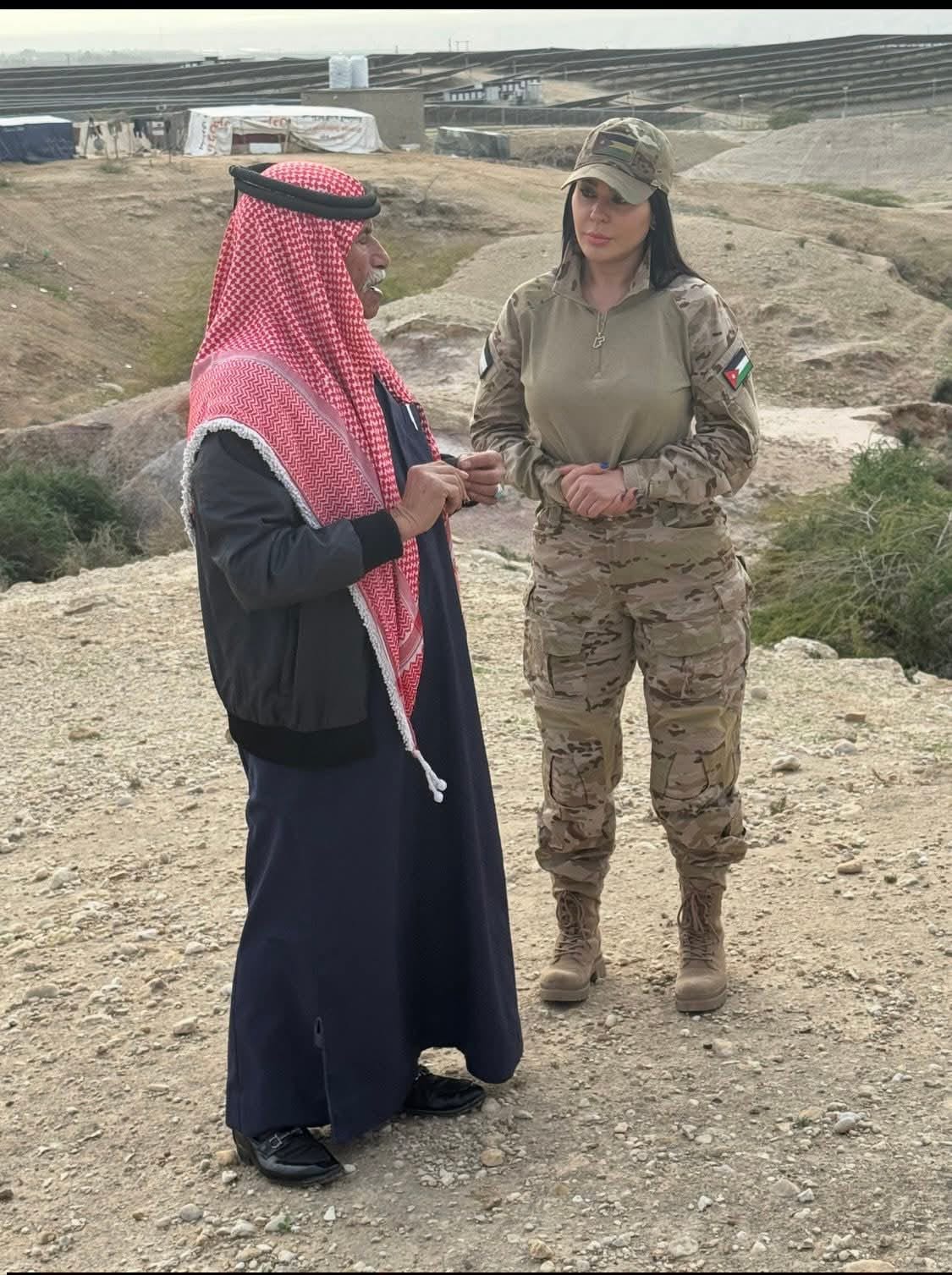 وقالت الصبيحي في منشورها : بذكرى الوفاء والبيعة، ومن خلال جولات فخر في أنحاء الأردن شمالًا وجنوبًا، ووسطًا وشرقًا وغربًا، التقيتُ ببعض المحاربين القدامى الذين حملوا الوطن في قلوبهم قبل بنادقهم.