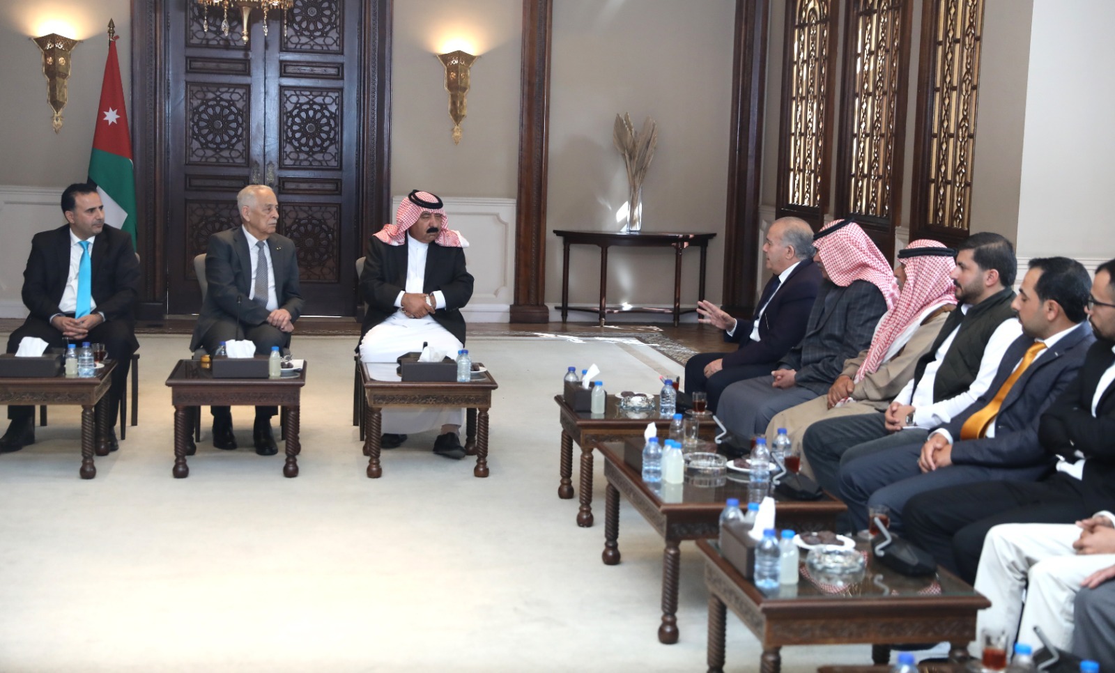 التقى رئيس الديوان الملكي الهاشمي يوسف حسن العيسوي، اليوم الأربعاء، في الديوان الملكي الهاشمي، وفدًا من أبناء عشيرة المشاقبة.