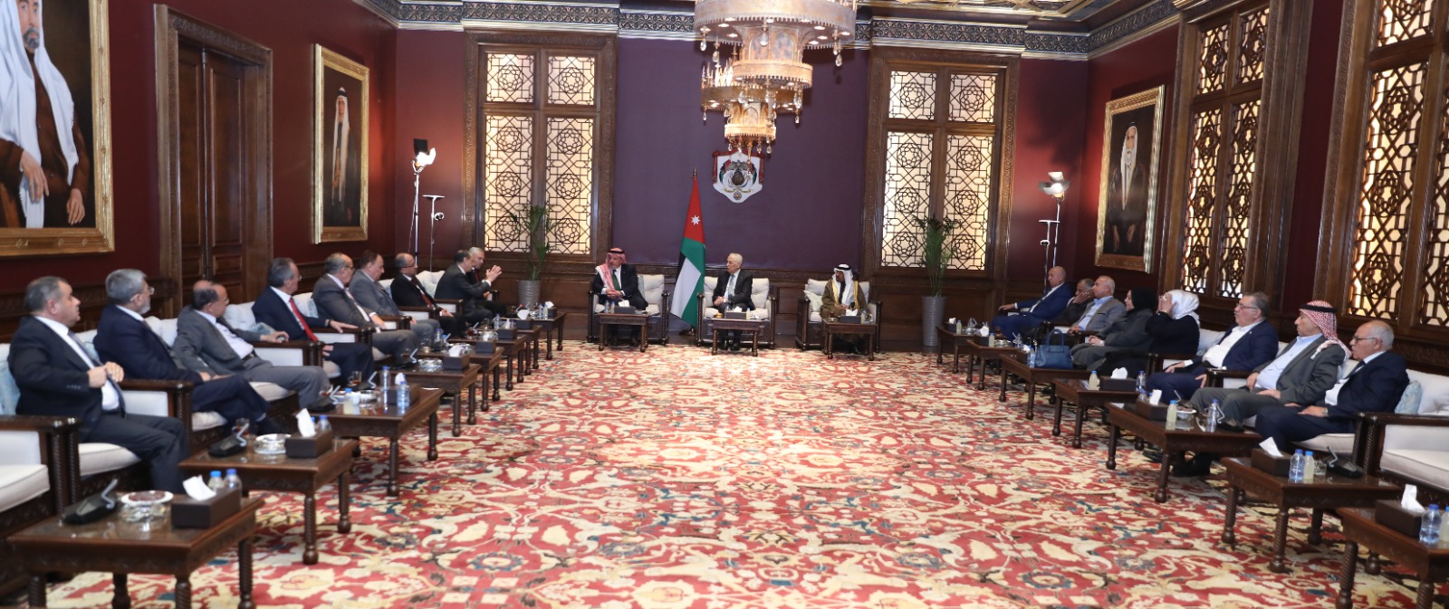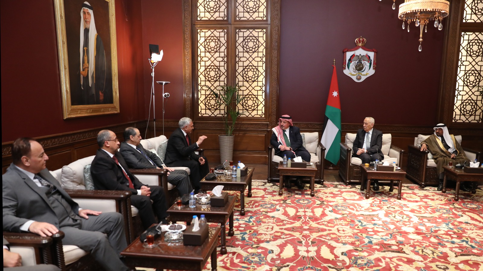 التقى رئيس الديوان الملكي الهاشمي يوسف حسن العيسوي، اليوم الخميس، في الديوان الملكي الهاشمي، وفدًا من أعضاء جمعية اللد، ووفدًا من ملتقى النخبة، في لقاءين منفصلين.