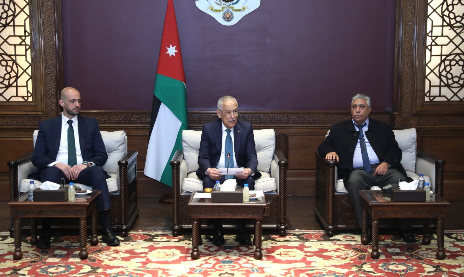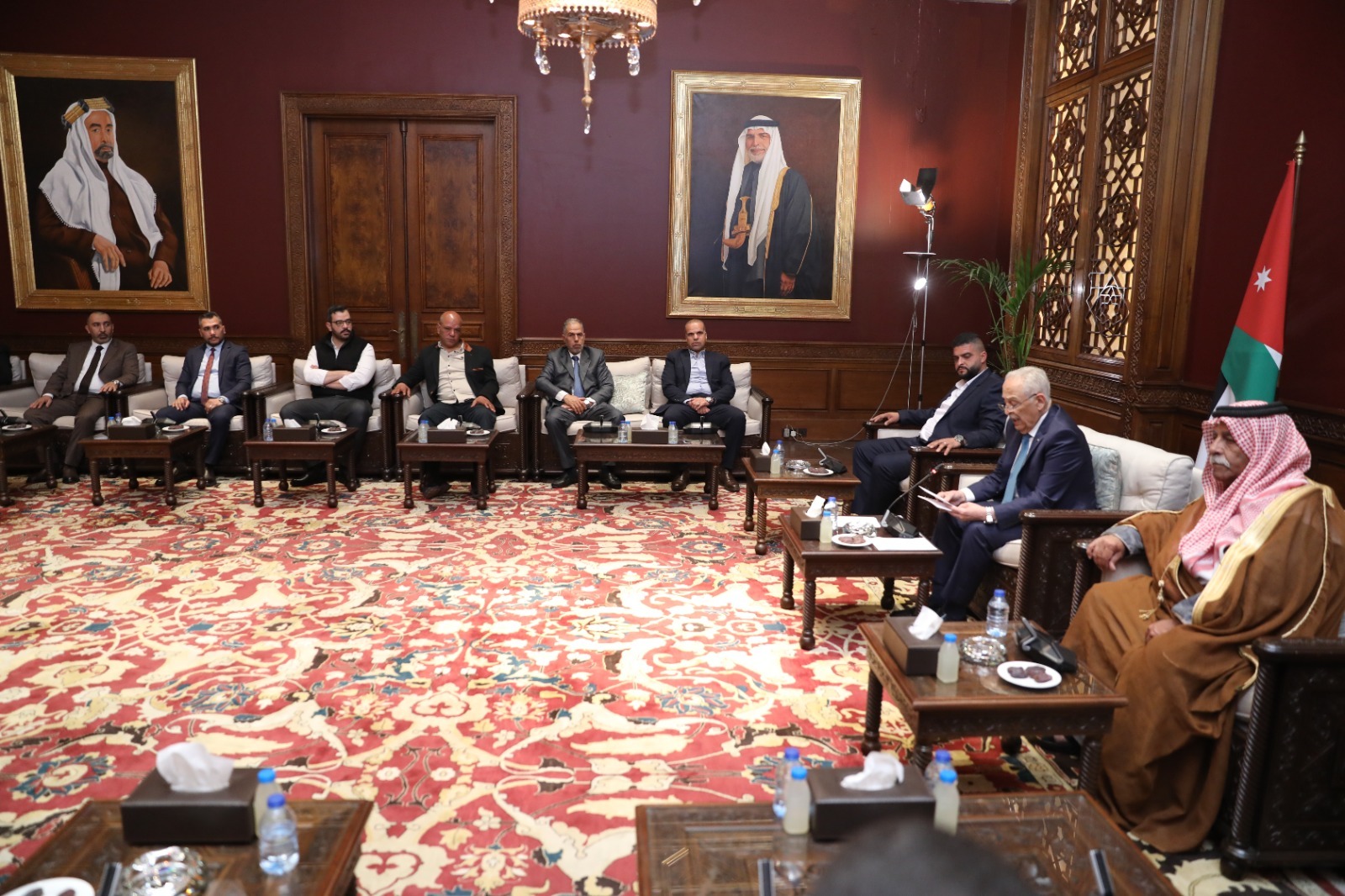 استقبل رئيس الديوان الملكي الهاشمي، يوسف حسن العيسوي، اليوم الاثنين، في الديوان الملكي الهاشمي، وفدًا من أعضاء نادي الطيبة بمحافظة إربد، ووفدًا من أعضاء جمعية ديوان أبو الحاج، وذلك في لقاءين منفصلين.