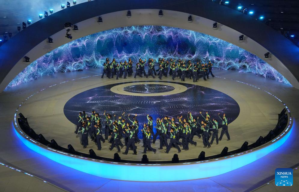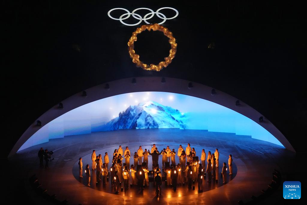 Actors perform during the closing ceremony of the Milan-Cortina 2026 Olympic Winter Games at Verona Olympic Arena in Verona, Italy, Feb. 22, 2026. (Xinhua/Sun Fei)