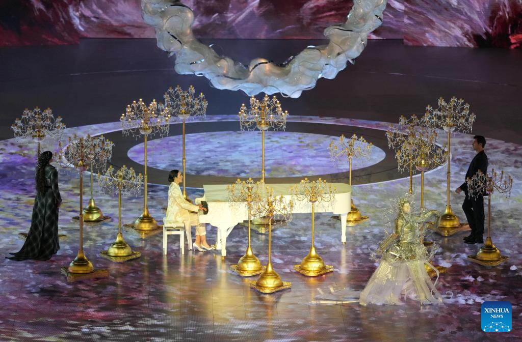 A pianist performs during the closing ceremony of the Milan-Cortina 2026 Olympic Winter Games at Verona Olympic Arena in Verona, Italy. (Xinhua/Xue Yuge)