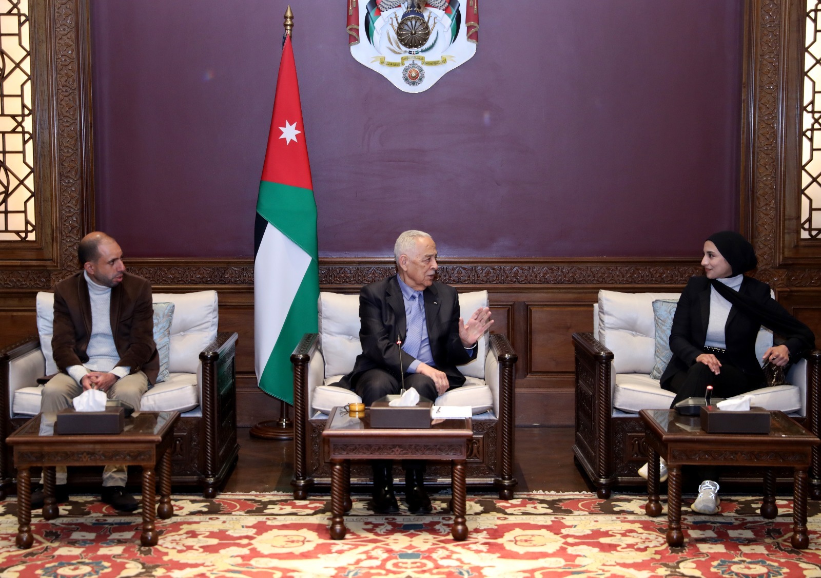وأكد أن أبواب الديوان الملكي الهاشمي مفتوحة دائماً أمامهم، تنفيذاً للتوجيهات الملكية السامية، كما هي مفتوحة أمام جميع الأردنيين، للاستماع إلى أفكارهم ومقترحاتهم ودعم جهودهم.