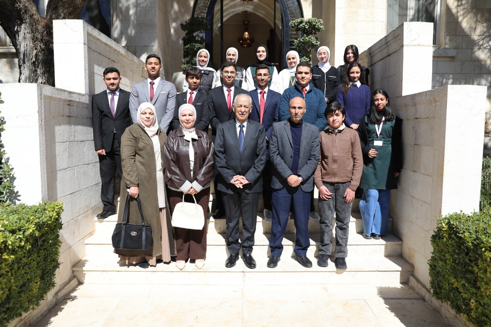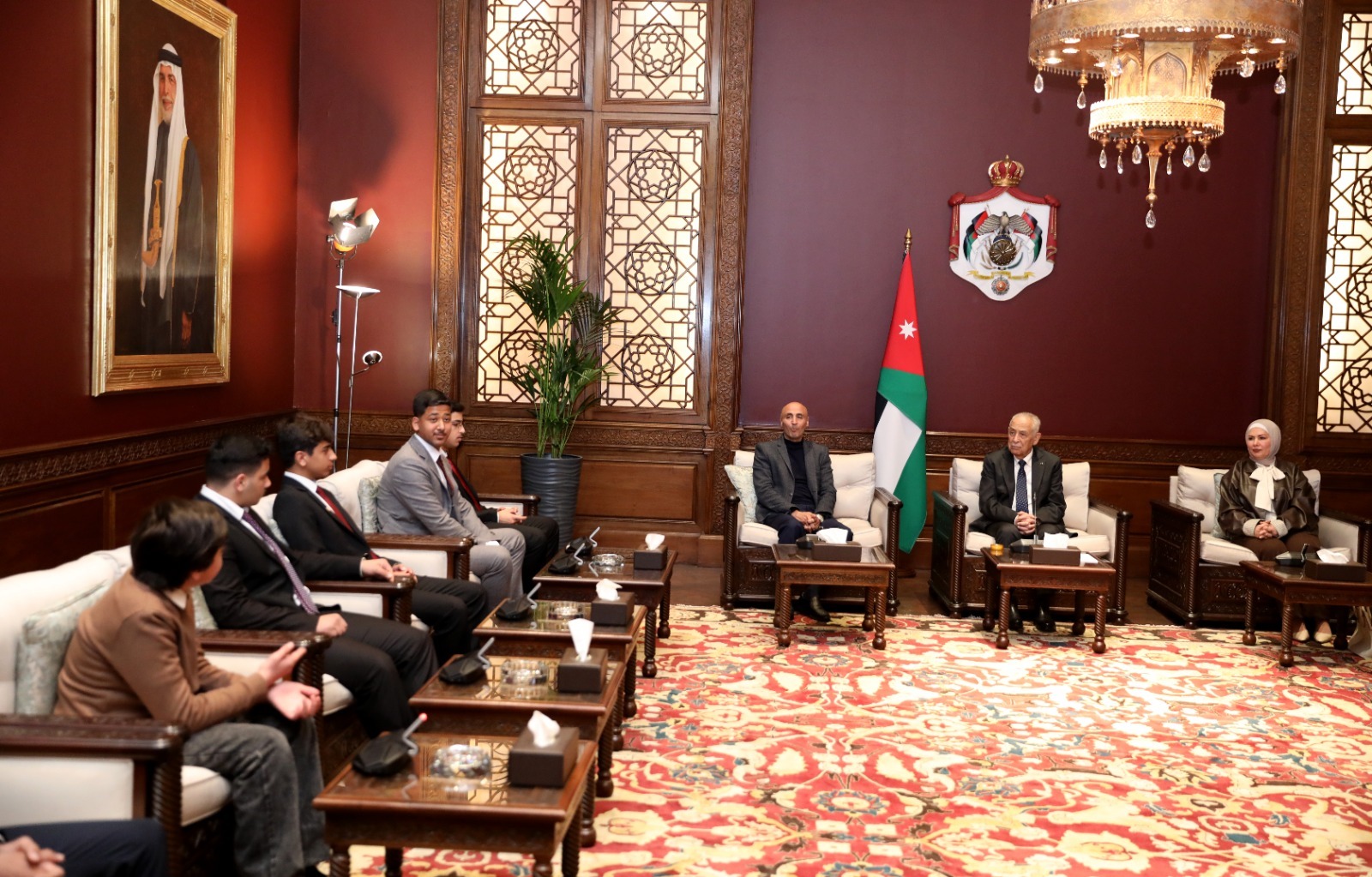 التقى رئيس الديوان الملكي الهاشمي، يوسف حسن العيسوي، وفداً من طلبة وأعضاء هيئة تدريس في مدرسة الملك عبدالله الثاني للتميز – فرع السلط، وذلك في الديوان الملكي الهاشمي.