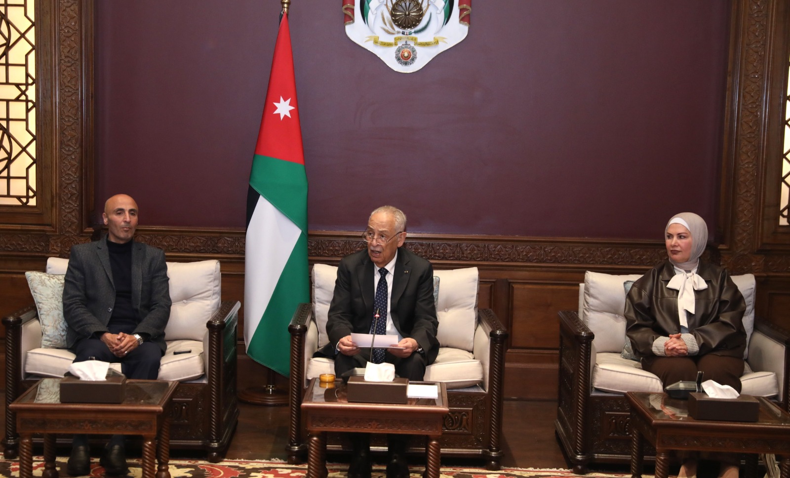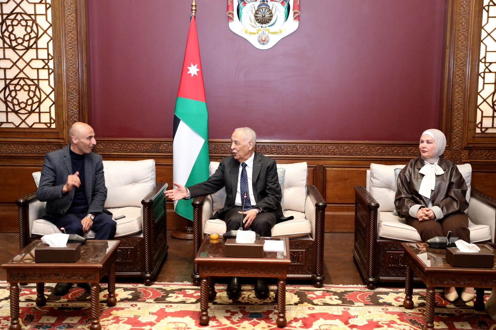 وفي مستهل اللقاء، رحّب العيسوي بالوفد، مؤكداً أن أبواب الديوان الملكي الهاشمي مفتوحة لجميع الأردنيين، تنفيذاً لتوجيهات جلالة عبدالله الثاني بن الحسين، الذي يحرص على التواصل الدائم مع مختلف فئات المجتمع.