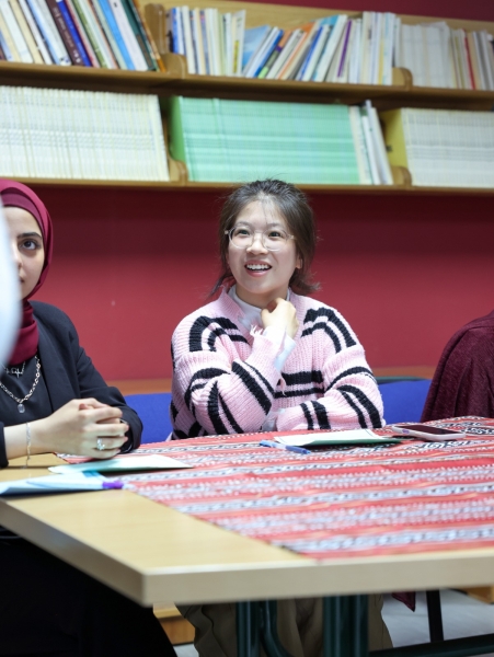 وجاءت الجلسة الأولى، التي أدارتها الدّكتورة بيان الشّيخ من شعبة اللّغة العربيّة بالتّعاون مع شعبة اللّغة العربيّة للنّاطقين بغيرها بمشاركة الأستاذة دينا النّجار، لتؤسّس لحوارٍ لُغويّ وثقافيّ يفتح آفاق التّعارف والتّبادل المعرفيّ بين الطّلبة، ويعزّز استخدام العربيّة في بيئةٍ تفاعليّةٍ قائمةٍ على الحوار والمشاركة.