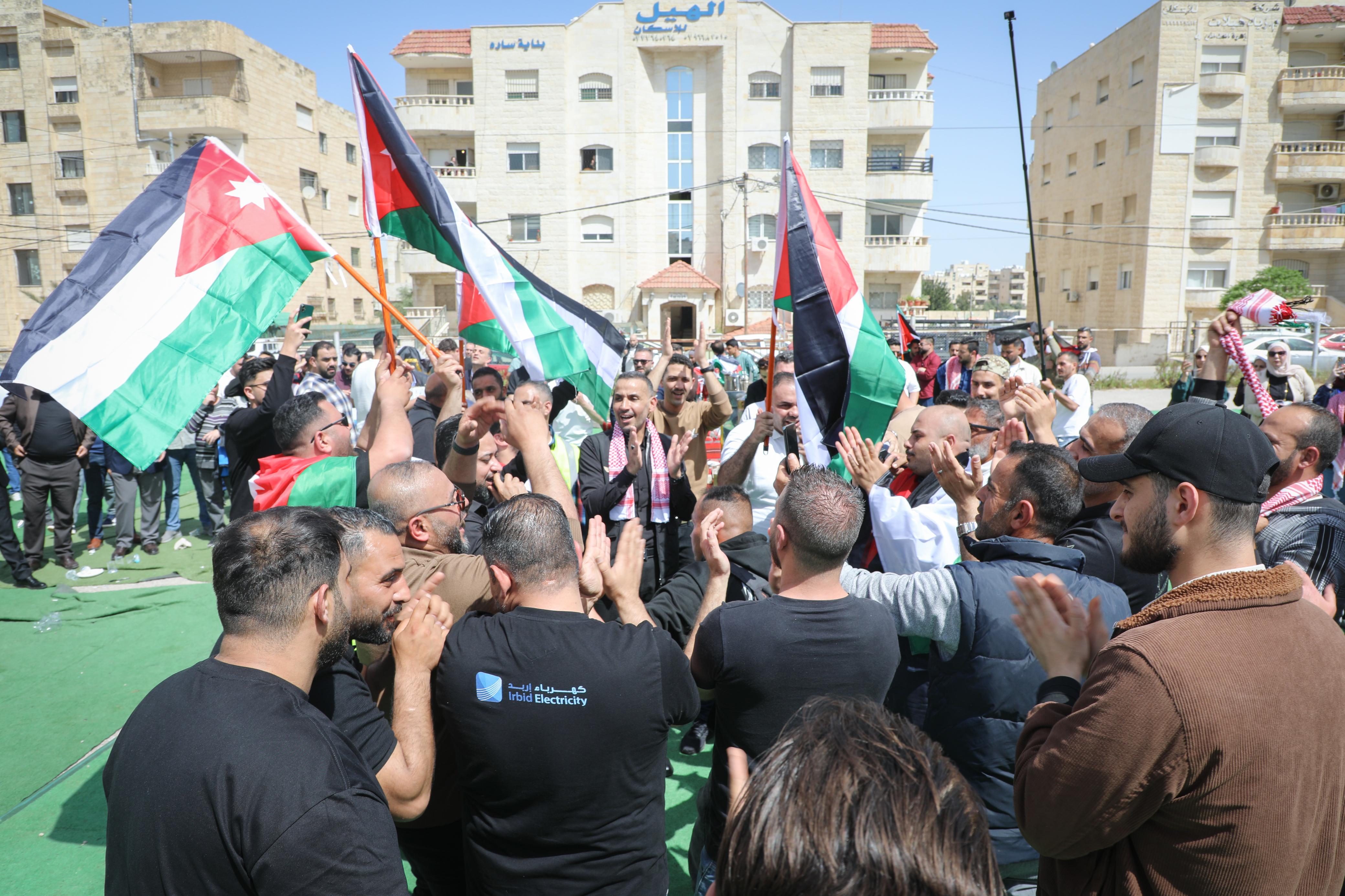 الأنباط - نظمت شركة كهرباء إربد موكبًا احتفاليًا بالسيارات جال في شوارع محافظة إربد، حملت خلاله الأعلام الأردنية التي تعبّر عن الدلالات التاريخية والوطنية والهاشمية الراسخة، وذلك احتفاءً بمناسبة يوم العلم الأردني، في مشهد وطني عبّر عن عمق الانتماء والاعتزاز براية الوطن التي توحّد الأردنيين وتختزل مسيرة الدولة وتضحياتها وإنجازاتها.