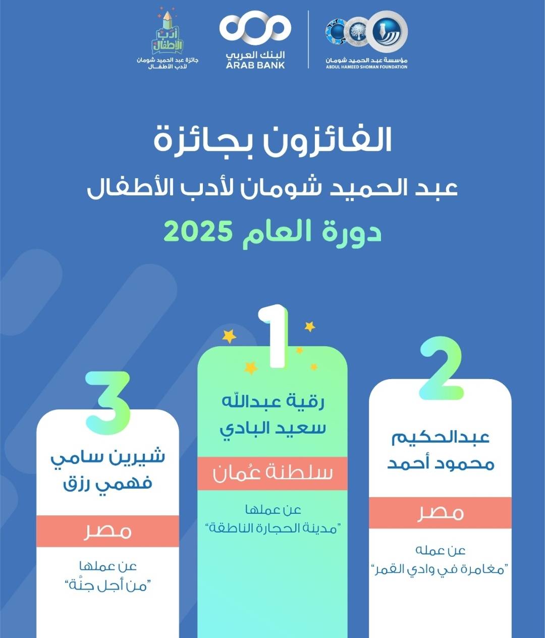 "شومان" تعلن الفائزين الثلاثة بجائزة أدب الأطفال