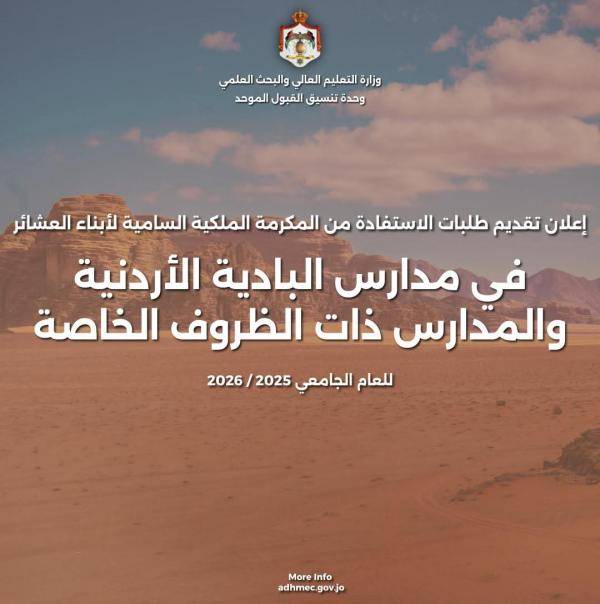 القبول الموحد: بدء التقدم لطلبات مكرمة أبناء العشائر الأحد