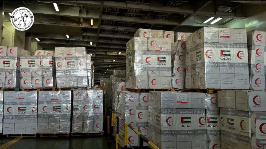 وصول سفينة المساعدات الإماراتية الثامنة "سفينة خليفة الإنسانية".