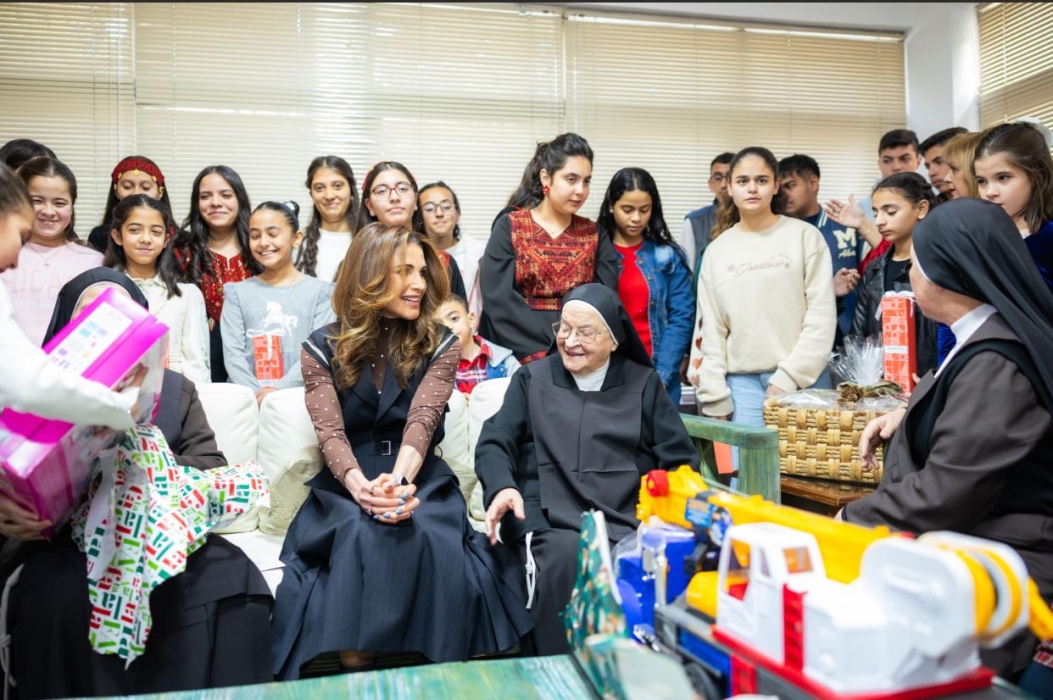 الملكة رانيا العبدالله تشارك مجموعة من الأطفال احتفالهم بعيد الميلاد في جمعية مار منصور الخيرية