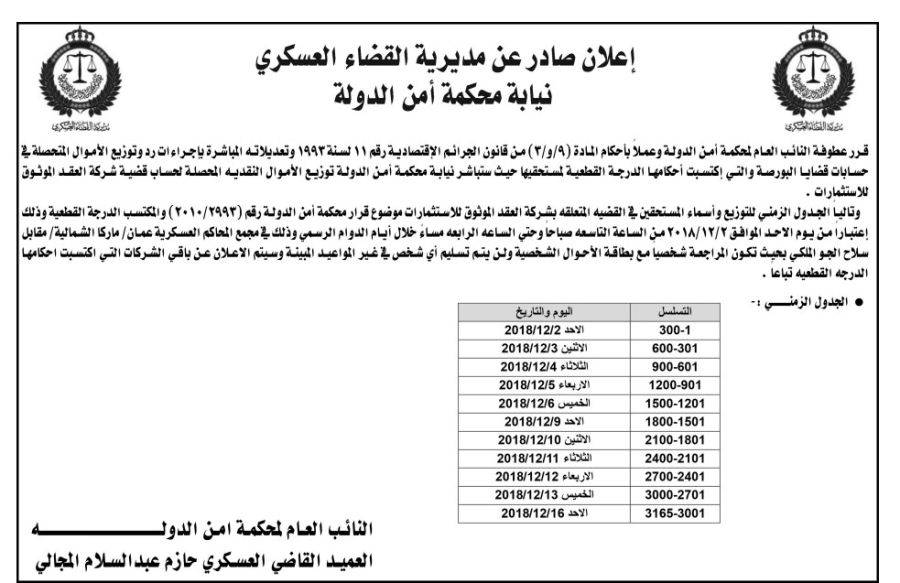 اسماء المستحقين في قضية بورصة "العقد الموثوق"