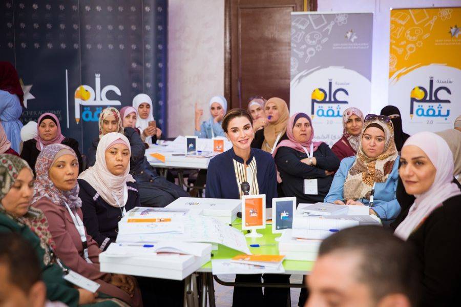 الملكة رانيا تستمع لتجارب المتدربين وتطبيقهم للمهارات المكتسبة