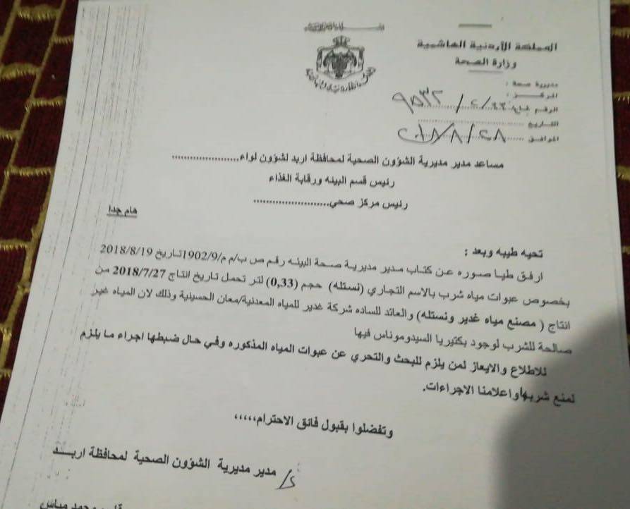 الصحة توعز بالتحري عن مياه نستله وسحبها ومنع تداولها