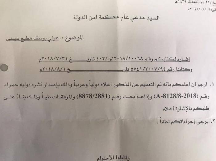"الإنتربول" يقبل طلب جلب عوني مطيع والتعميم عليه (وثائق)