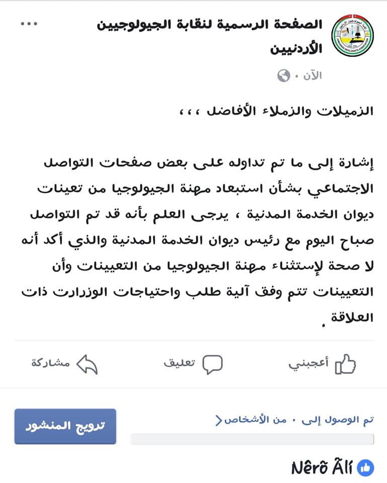 هميسات والنسور: لا صحة لإستثناء مهنة الجيولوجيا من تعينات ديوان الخدمة