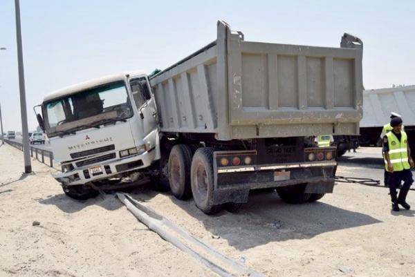 5 إصابات بتصادم شاحنتين وسيارة في الشونة الجنوبية
