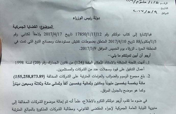 الحكومة السابقة طالبت شركات لها صلة ب"مصنع الدخان" بأكثر من 155 مليون دينار