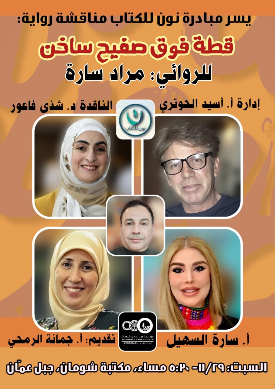 مبادرة نون للكتاب على موعد مع "قطة فوق صفيح ساخن" للروائي مراد سارة. .