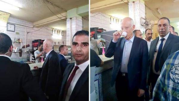 صور الرئيس التونسي يحتسي القهوة وسط الشعب تثير الإعجاب