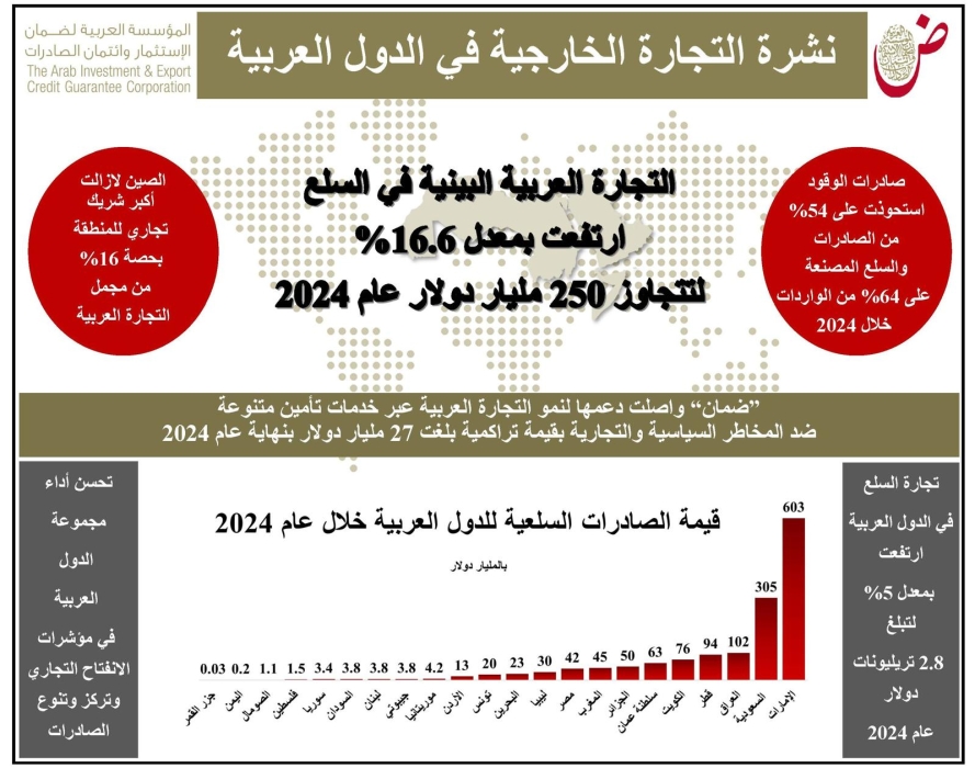"ضمان الاستثمار": 3.6 تريليون دولار قيمة التجارة العربية البينية العام الماضي